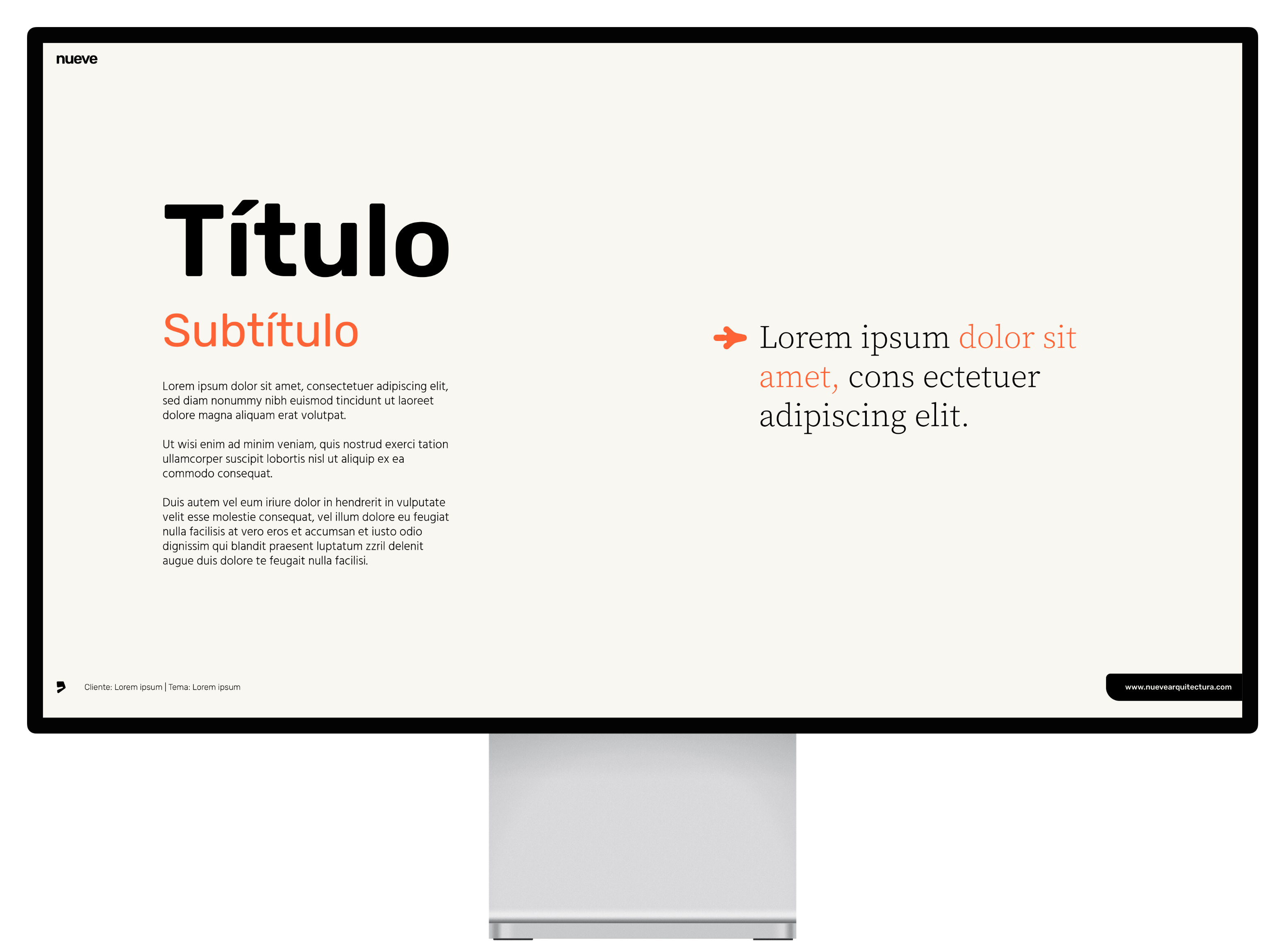 Cada aspecto de la identidad visual se diseña para crear una experiencia coherente y enriquecedora para los clientes de Nueve, reflejando siempre profesionalismo, limpieza y cercanía.